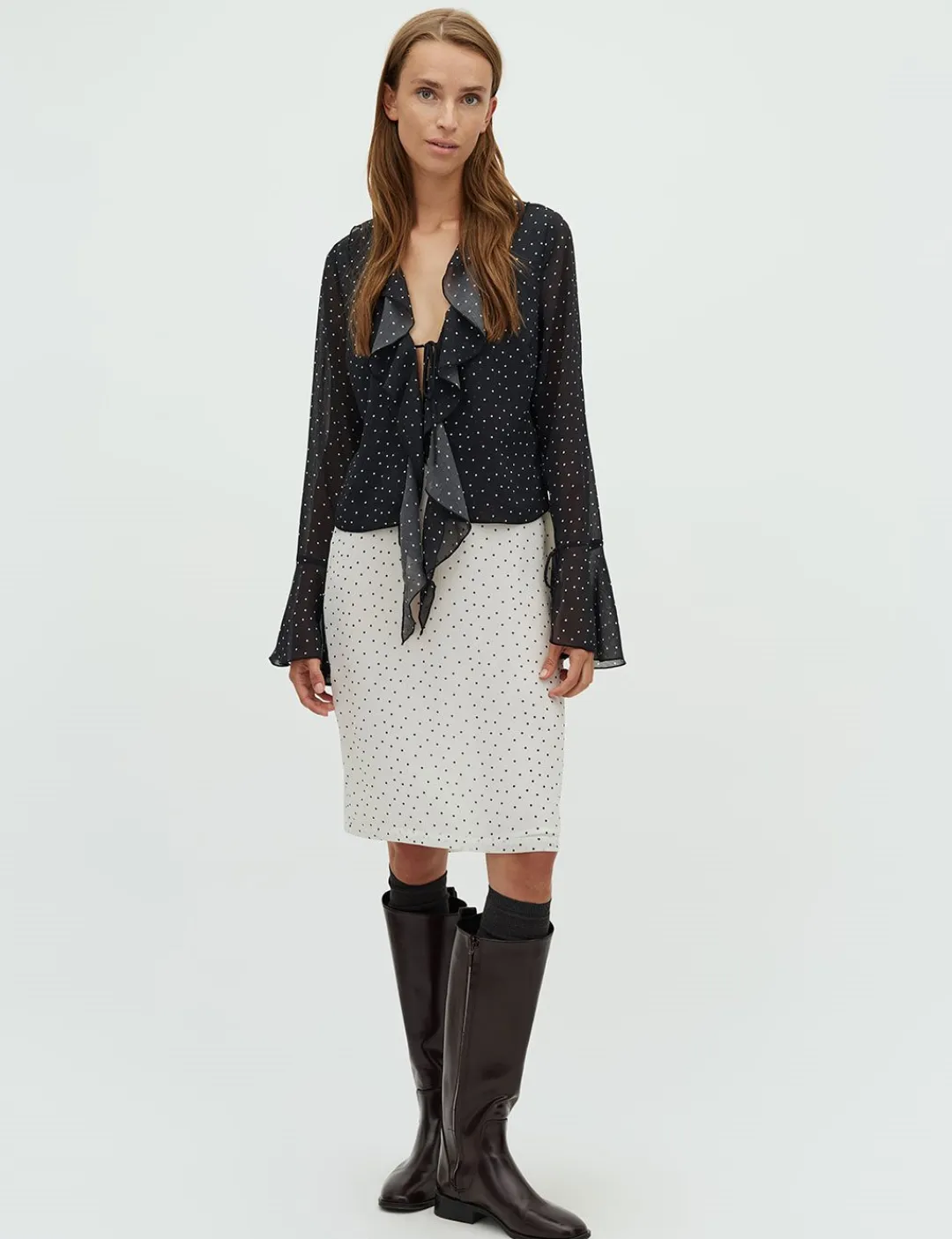 – Lange ærmer med snøre detaljer