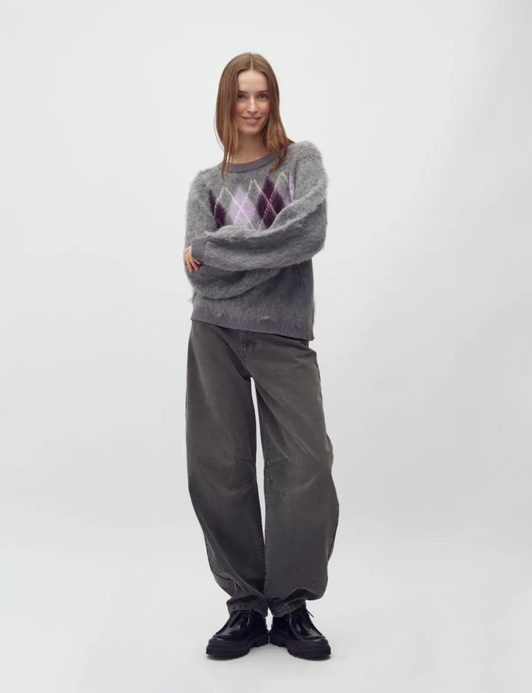– Materiale: 58% Akryl, 14% Nylon, 14% Polyester, 12% Uld, 2% Elastanr