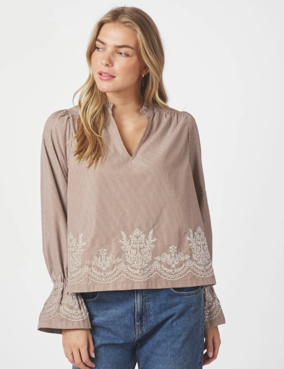 – Ærmer med puf-effekt ved håndledr