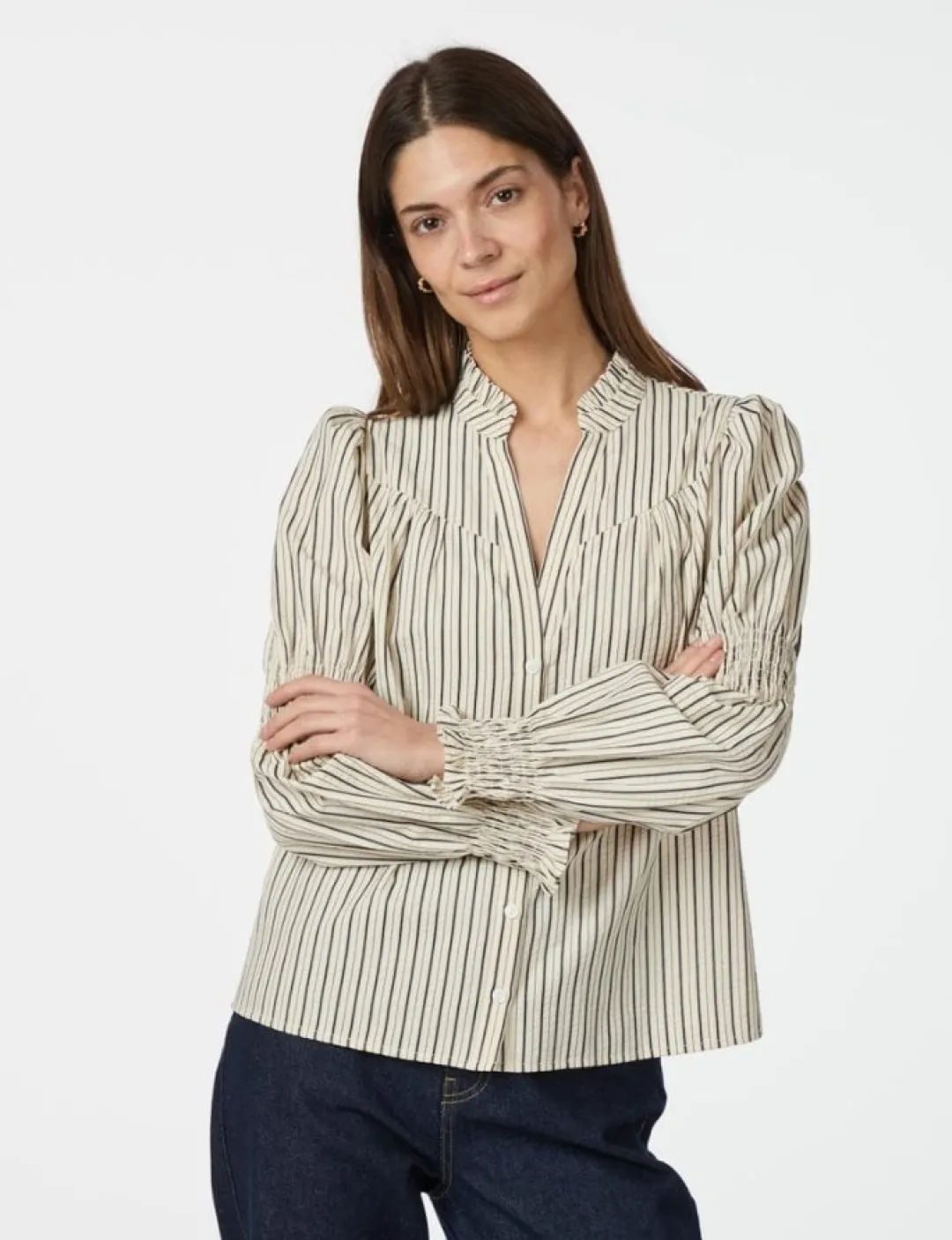 – V-hals med flæsedetaljerr