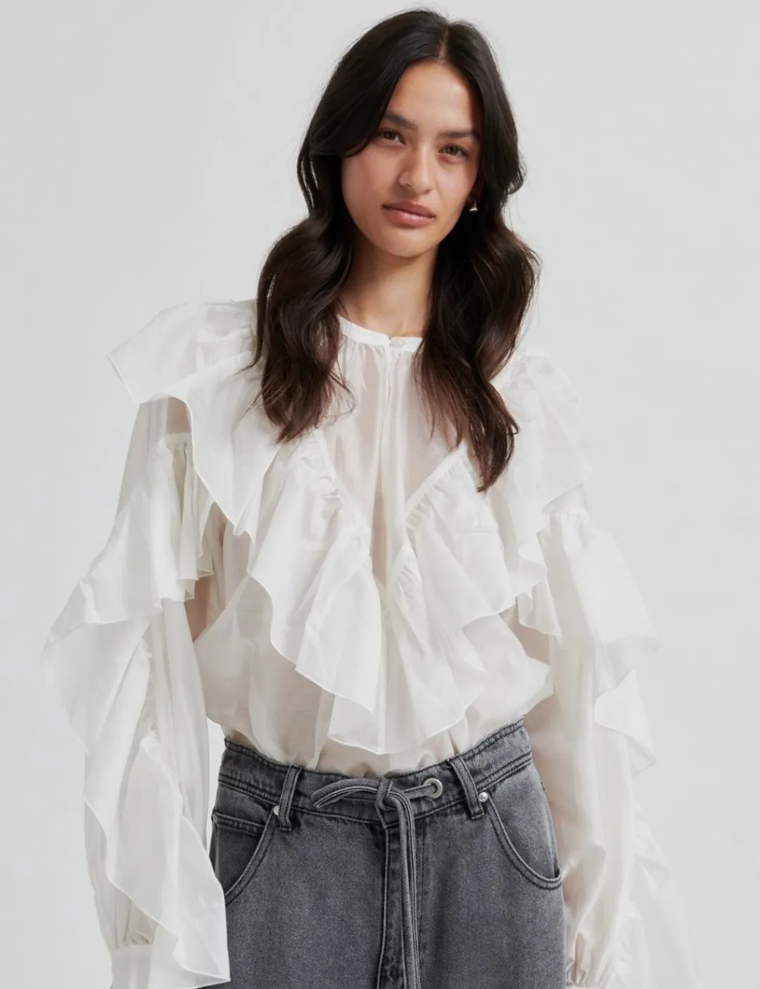 – Lange ærmer med manchetter og knaplukningr