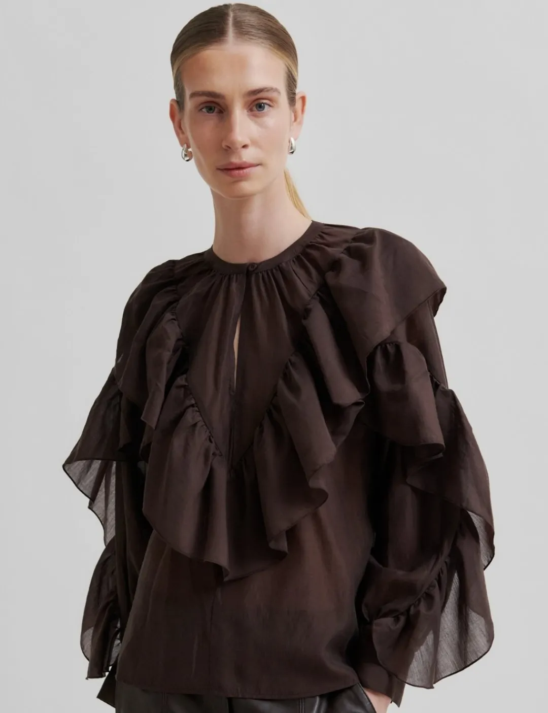 – Lange ærmer med manchetter og knaplukningr