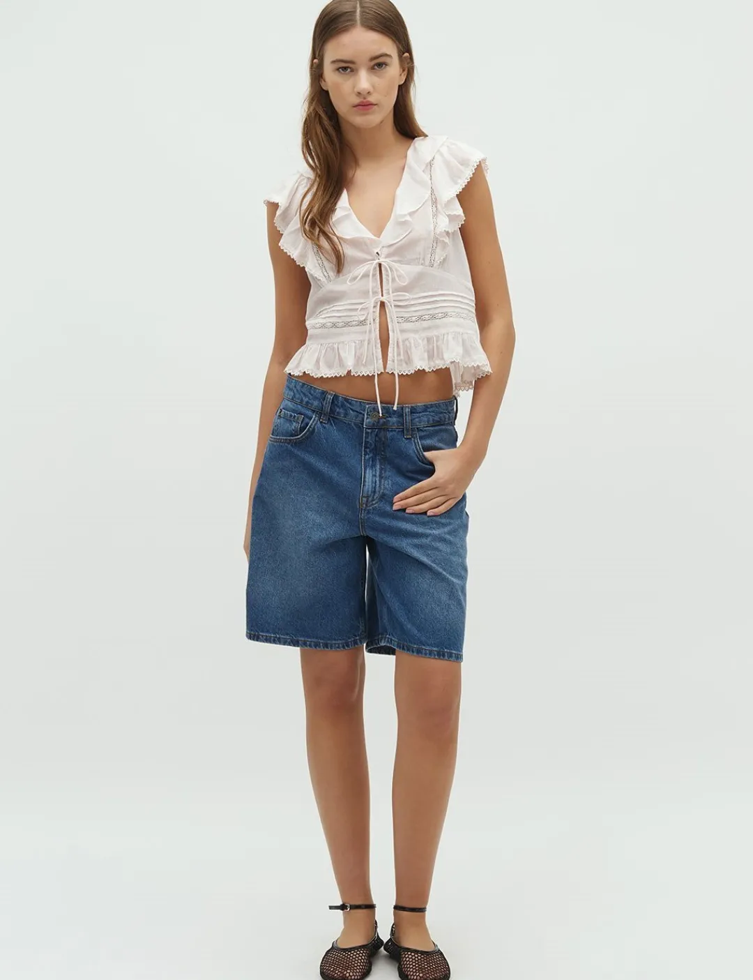 – V-hals med flæserr
