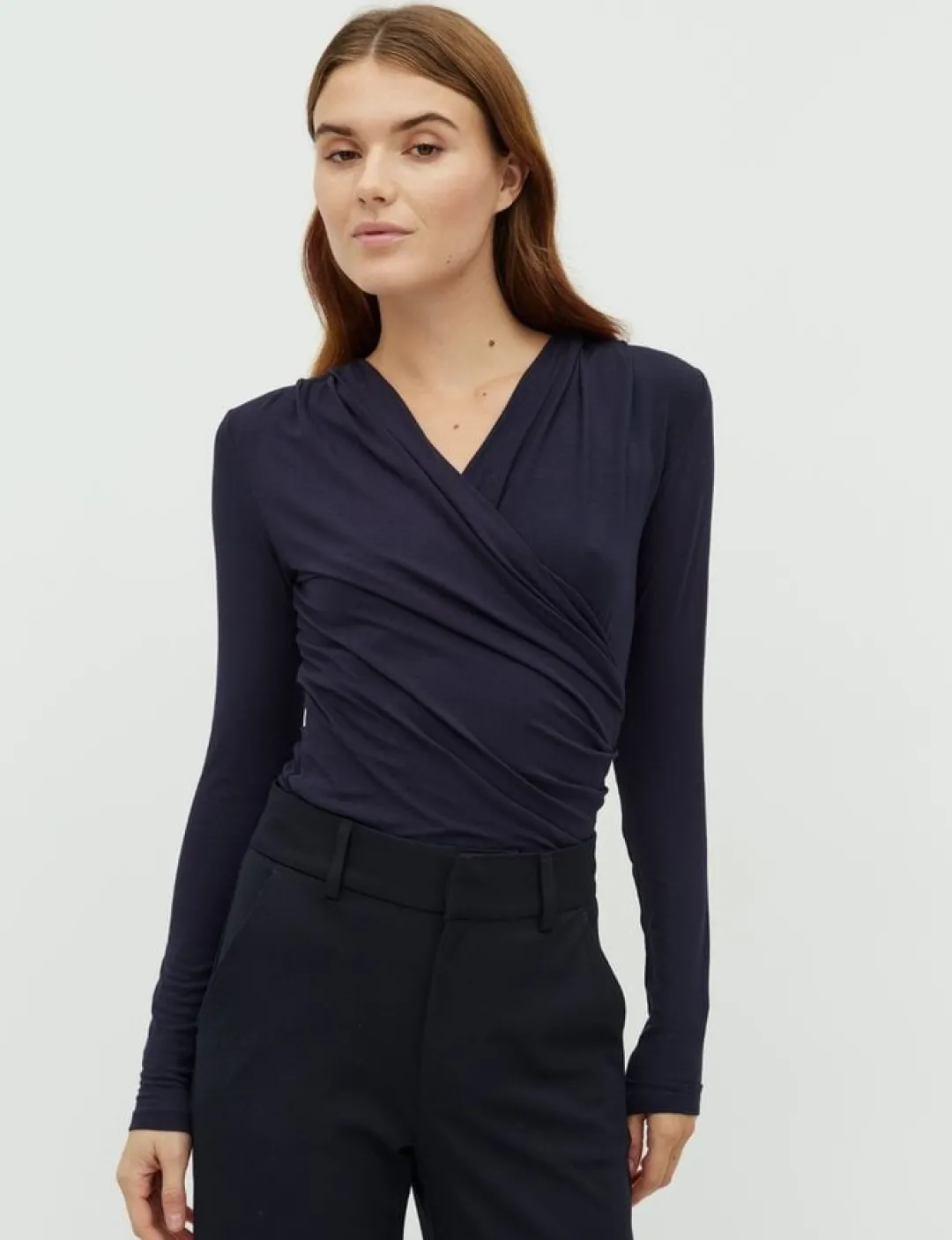 Lione har lange ærmer og en slå-om effekt foran, der både skaber flotte draperinger samt en feminin v-hals. De lange ærmer skaber et meget sofistikeret look, samtidig med at den tætsiddende pasform understreger din figur på bedste vis. r