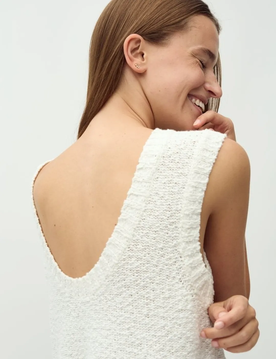 Modellen er 176 cm høj og har en størrelse S på.